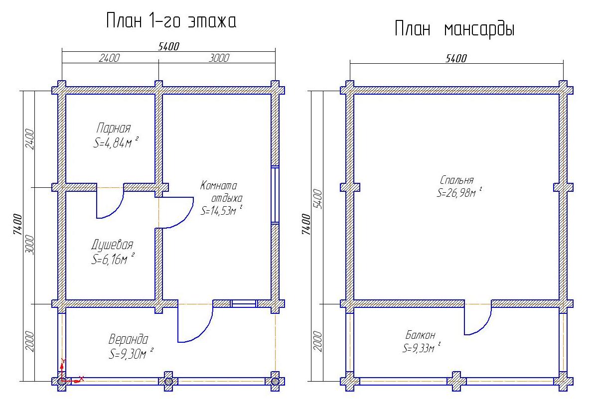 Размер строения: 5,4х7,4 м